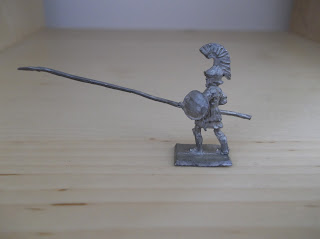 I like Les Higgins figures so much I bought the company (well part of it anyway - Old John from 20mm Nostalgia Revival, Richard at Vintage20Mil and a few others were involved too). While Higgins' specialism was the English Civil War and Marlburian period he did design a small range of 30mm Ancient figures. An example is the Greek officer on the right above. I think he has one of the best faces I've seen on a small scale figure.